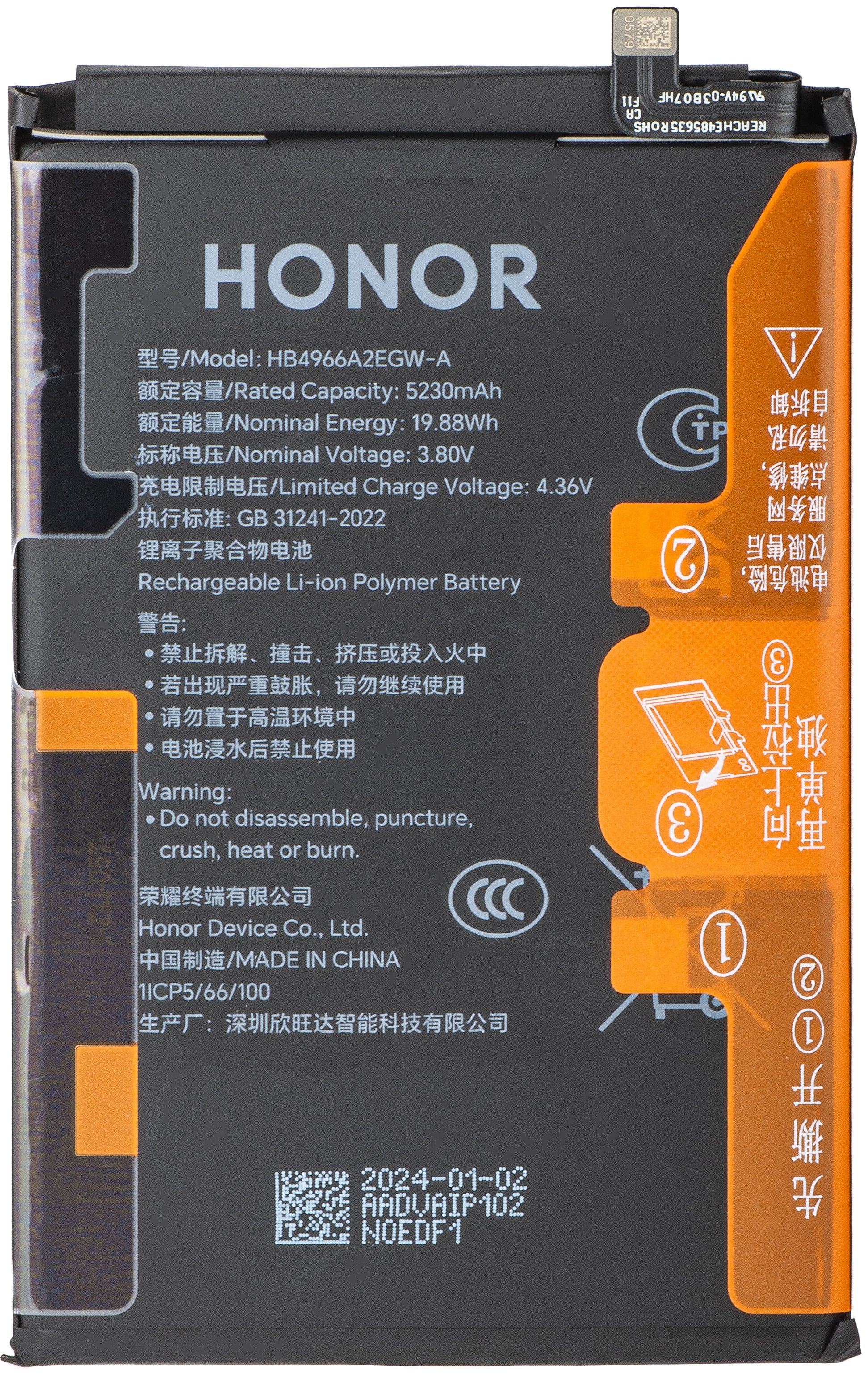 HB4966A2EGW Honor X7b 4G Battery