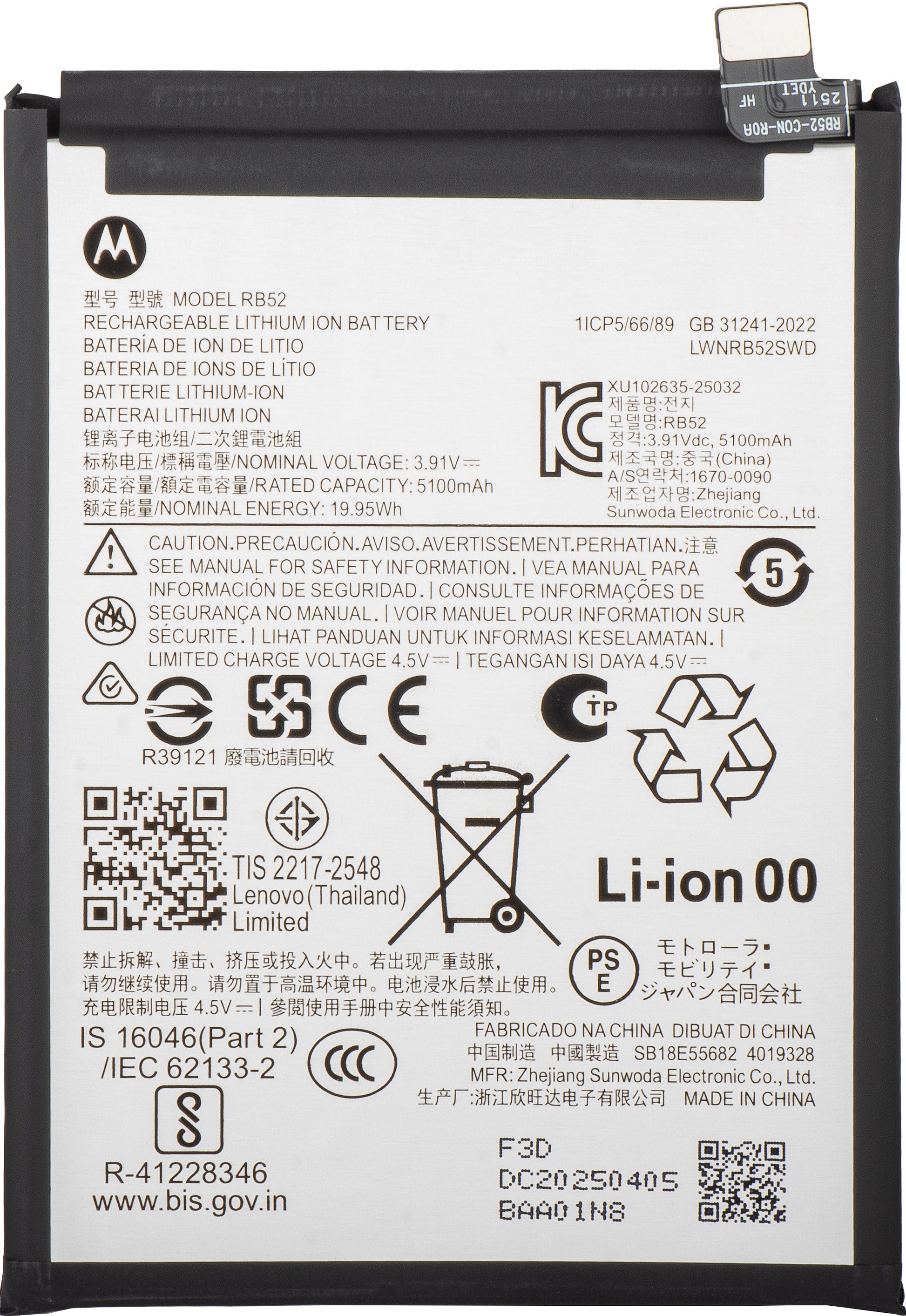 RB52 Battery for Motorola Moto G56