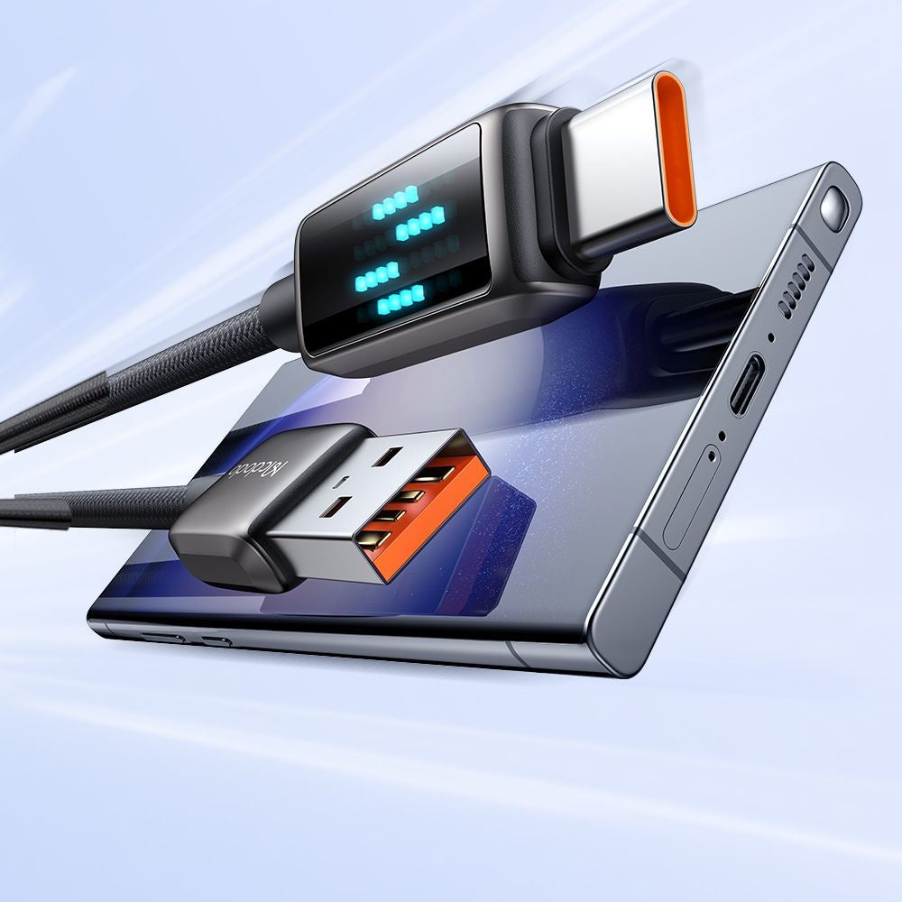 Kabel wyświetla animację LED, która wskazuje stan ładowania, oferując jasny i intuicyjny widok procesu zasilania.