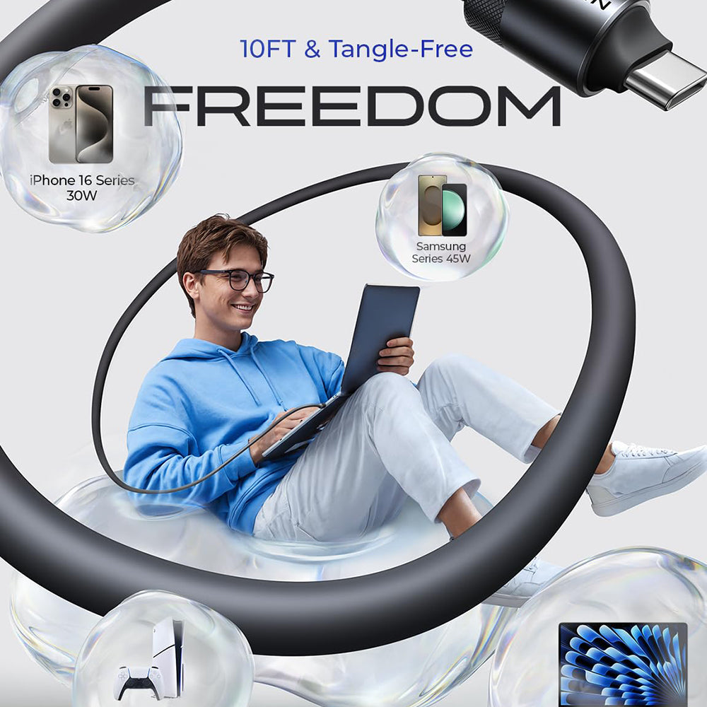 Dzięki technologii szybkiego ładowania i zintegrowanemu podwójnemu układowi E-Marker, kabel optymalizuje przepływ energii zapewniając zaawansowane bezpieczeństwo i stałą wydajność.