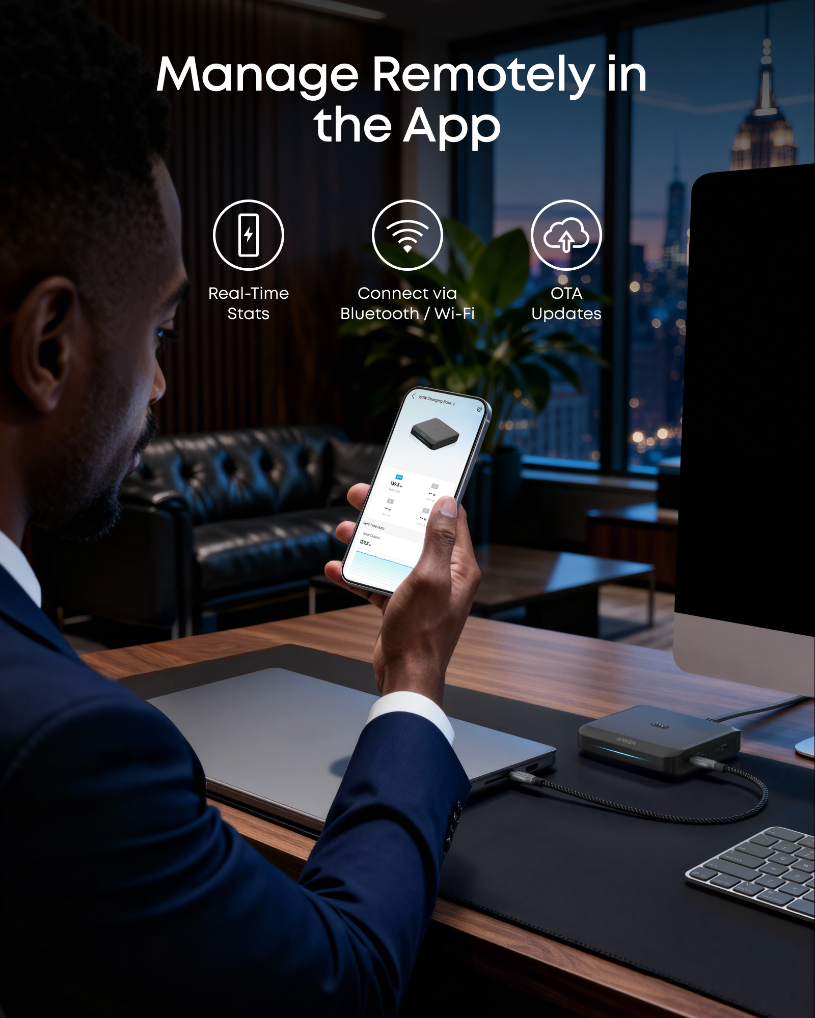 | Wyjście | USB-C (5V / 3A / 9V / 3A / 12V / 3A / 15V / 3A / 20V / 5A / 28V / 5A) / USB-C (5V / 3A / 9V / 3A / 12V / 3A / 15V / 3A / 20V / 5A) / USB-A (5V / 3A / 9V / 2A / 10V / 2.25A / 12V / 1.5A) / Pogo Pin (15V - 27V / 10A) |