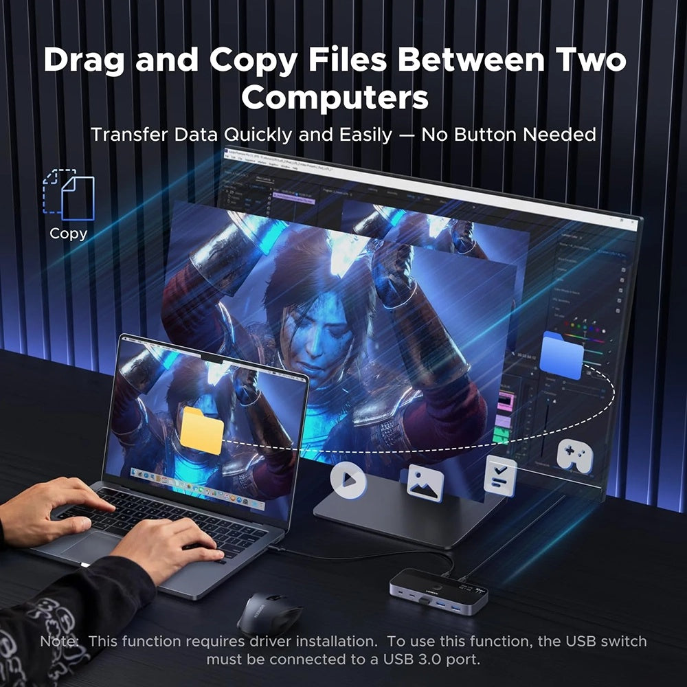 Zarówno porty USB3.2, jak i port Type-C umożliwiają transfer danych do 10Gbps. Udostępniaj dokumenty w rekordowym czasie za pomocą tego adaptera typu switch.